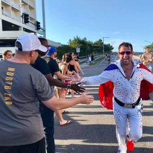 In fact, I usually do about 15 races a year as Elvis and push for Team HOYT when needed.